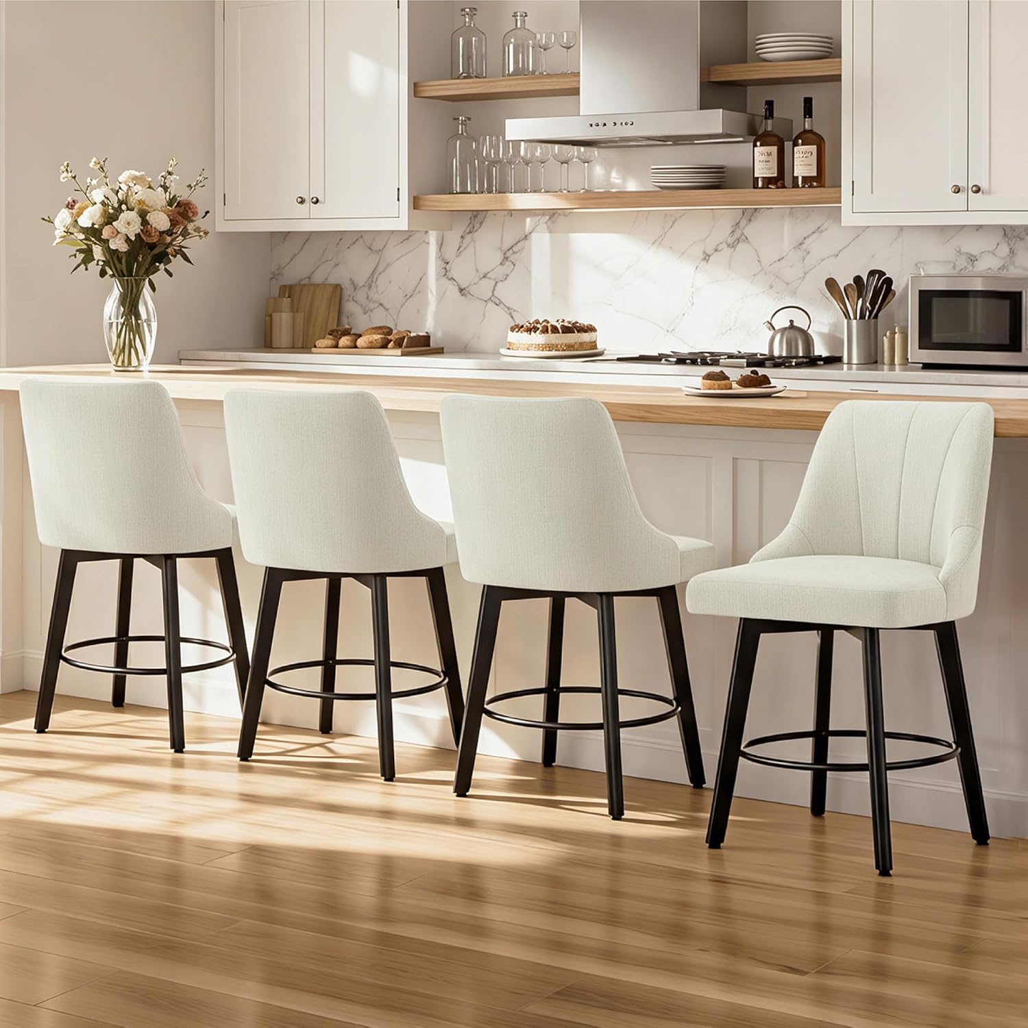 With classic design and clean profile, the modern bar stool is an attractive addition to any décor. The chair seat cushion add comfort, suitable for long-term sitting.