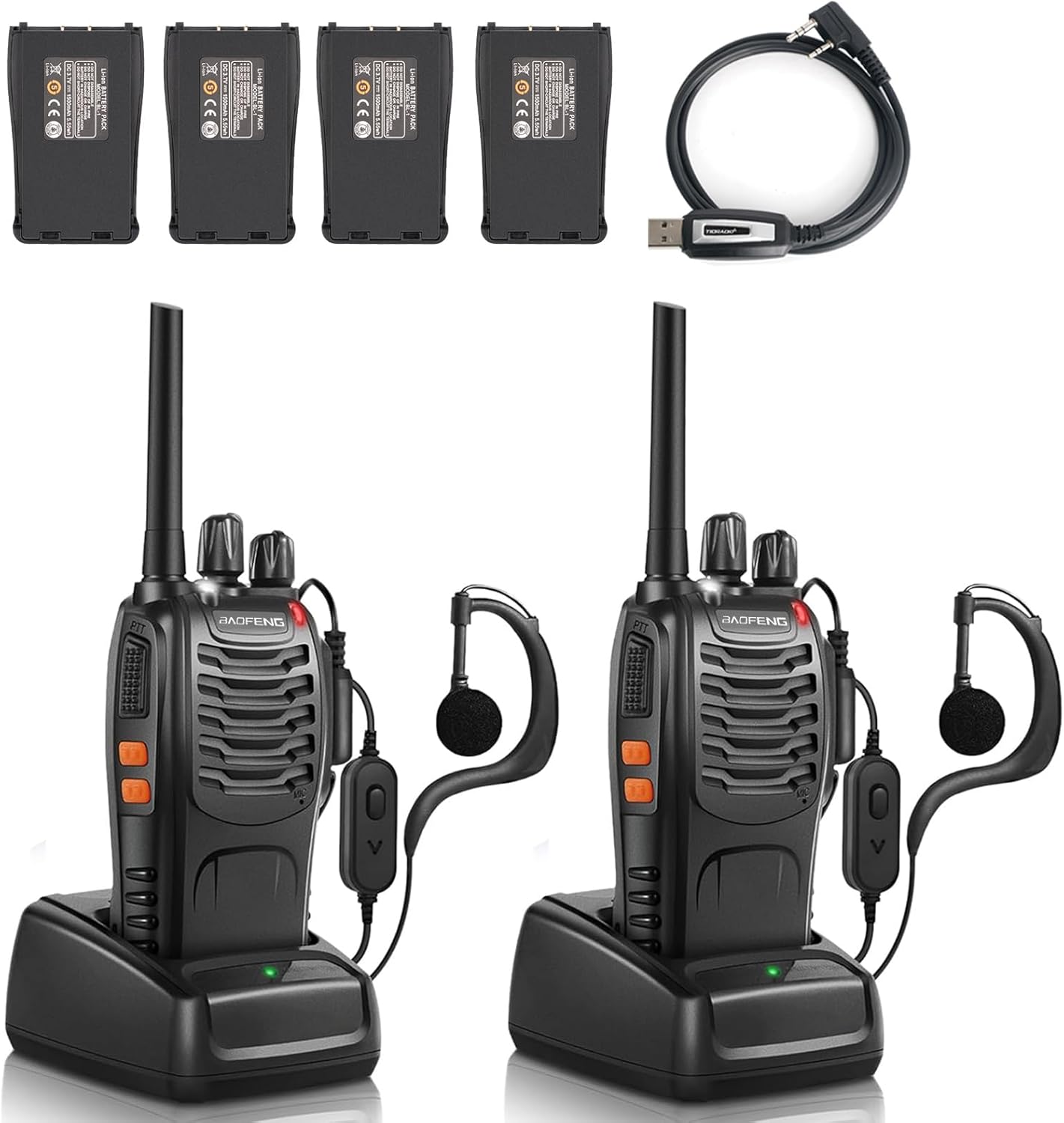 | BuiltIn Media | BaoFeng BF-888S (6 units), Earpieces with Mic (6 units), 3.7v 1500mAh Li-ion Battery (6 units), SMA-Female Antenna (6 units), Belt Clip (6 units), Manual (6 units), Desktop Charger (6 units), Wrist Strap (6 units) |