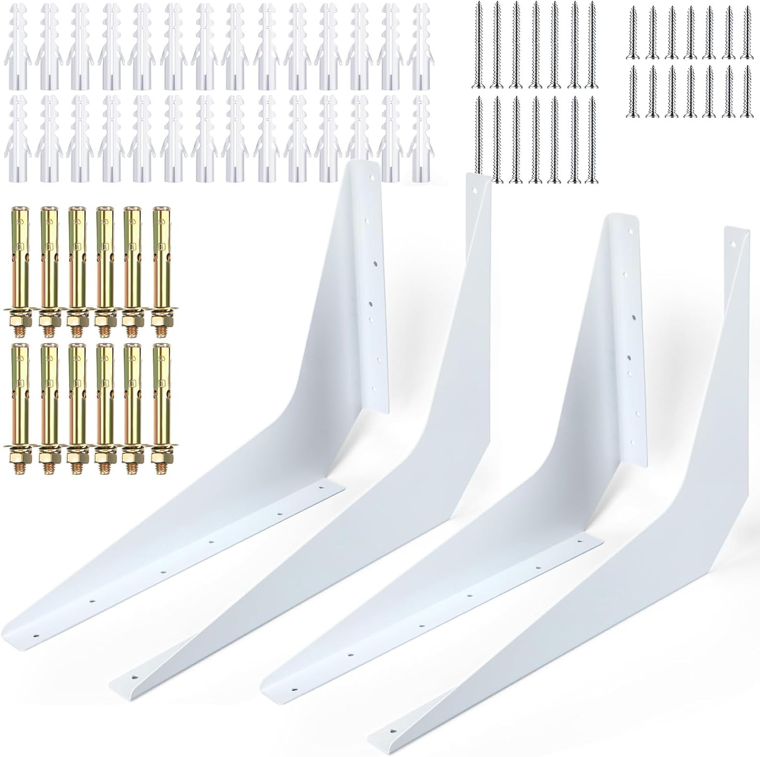 Features: Heavy duty shelf brackets with strong load bearing capacity. Our countertop brackets are high strength steel with a durable powder coating for long lasting resilience. The pair can support up to 1, 200 pounds, ensuring that your shelf can easily withstand the heaviest loads. The reversible and adaptable design is suitable for a variety of spaces, from professional studios to home kitchens. Combining the shape of the L bracket and some wooden shelves is an easy and affordable way to make the most of wall space and store more items. Specifications: Material: steel Color: white Size: about 12 x 18 inches/ 30 x 45 cm Package includes: 2 x Heavy duty shelf brackets Notes: Manual measurement, please allow slight errors on size. The color may exist a slight difference due to different screen displays.