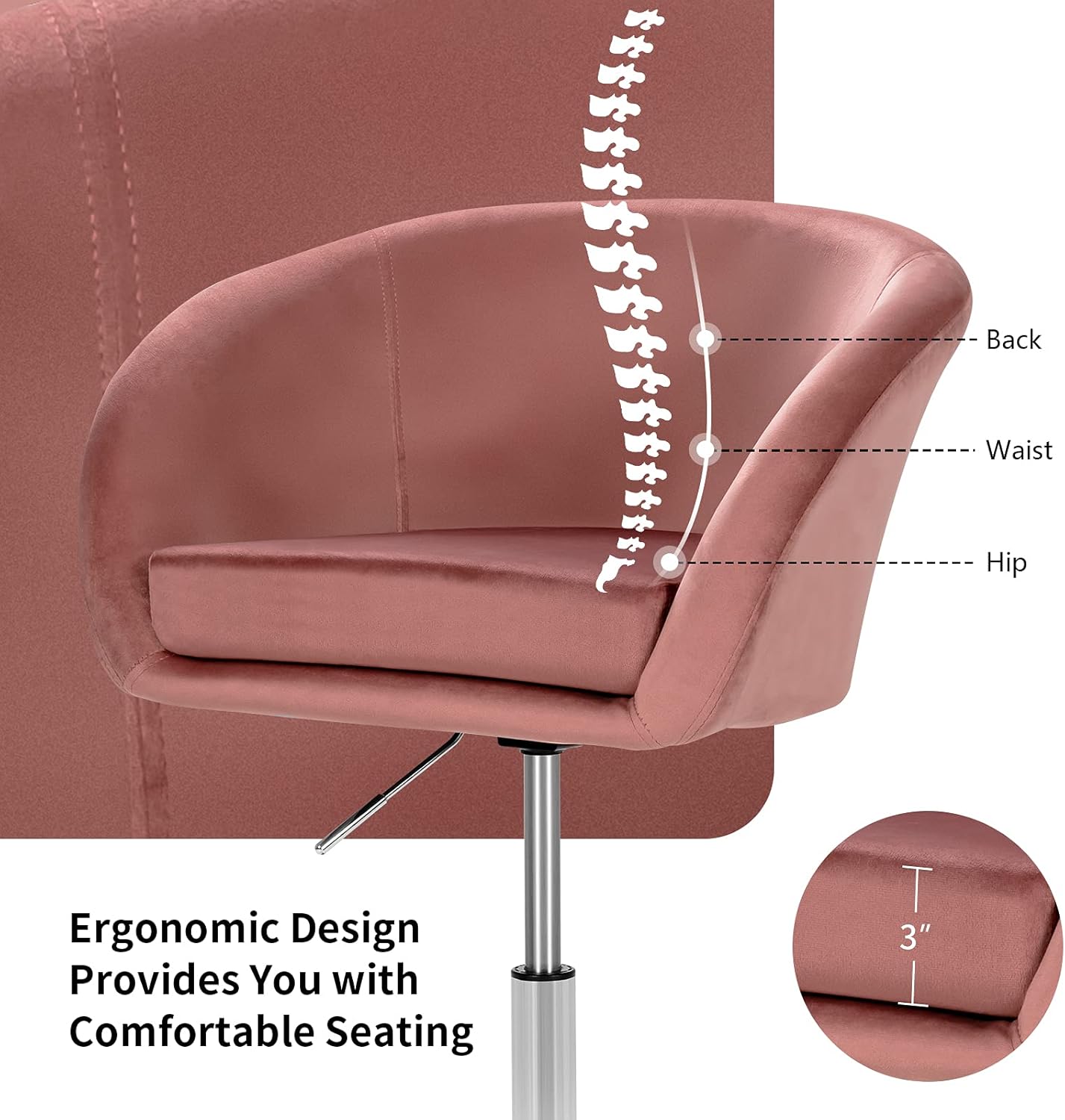 | Model Name | Vanity Chair, Height Adjustable Modern Velvet Makeup Chair with Chrome Frame, Round-Back, Comfortable Swivel Accent Leisure Chair for Living Room, Bedroom |