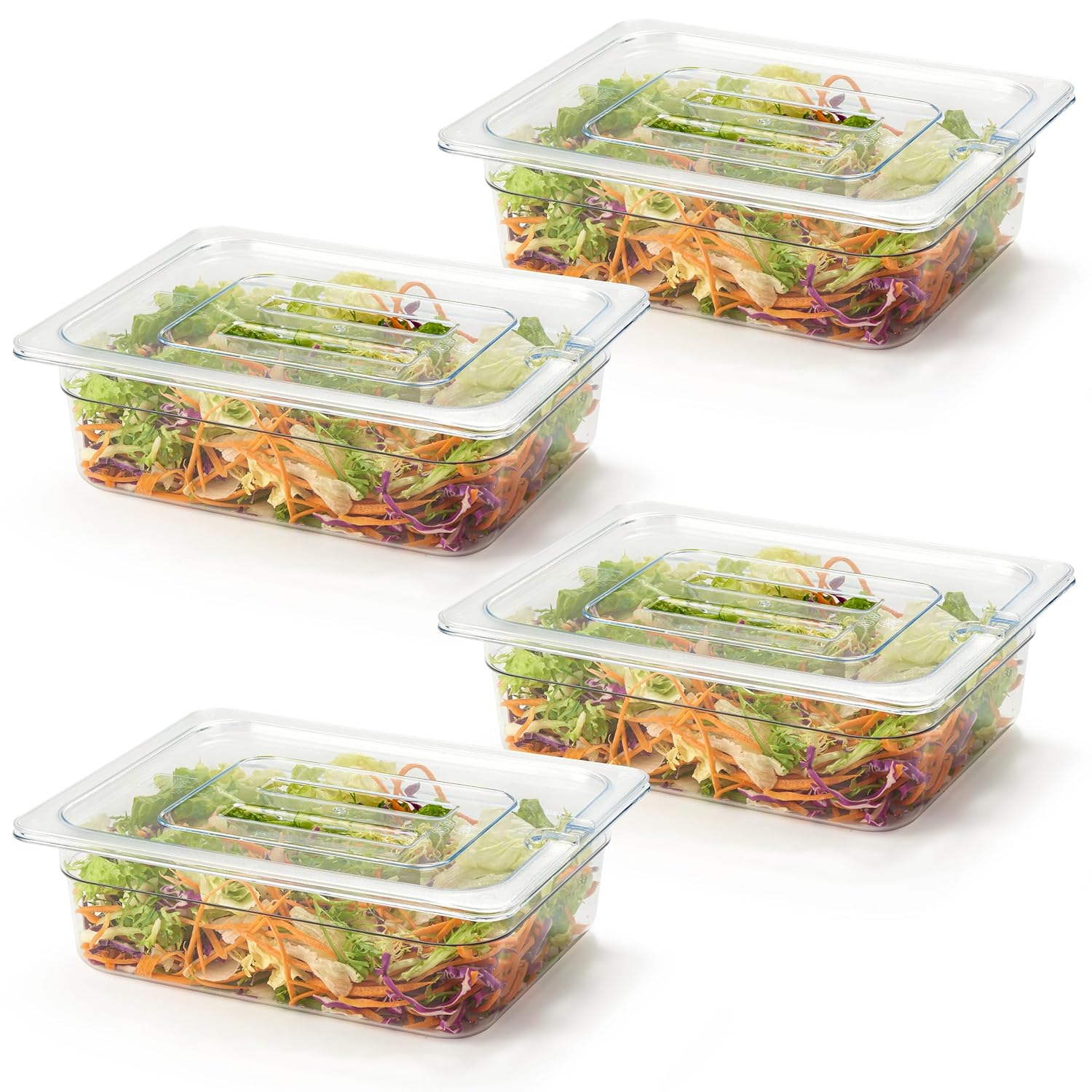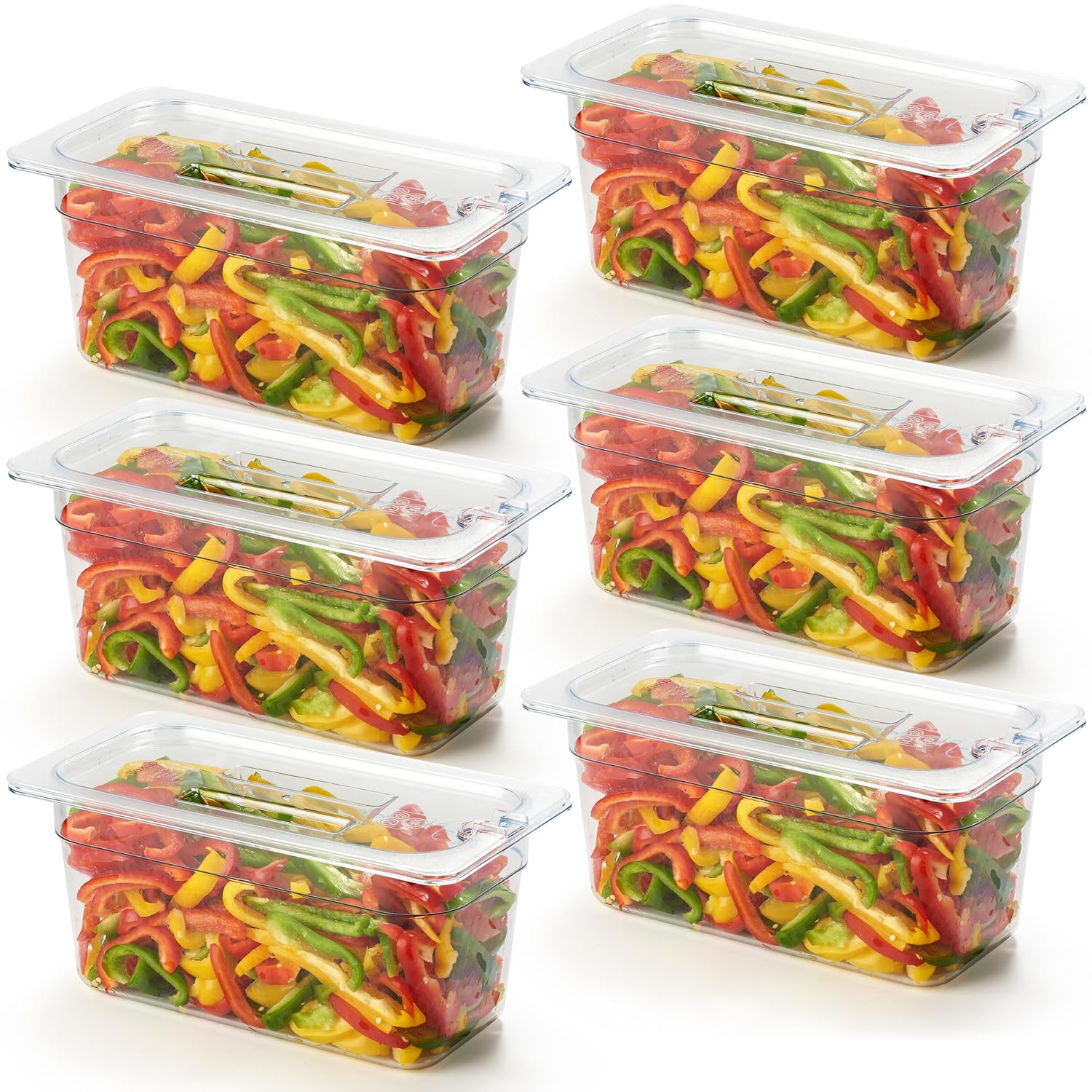 CURTA 6-Pack 1/9 Size 4" Deep NSF Polycarbonate Food Pan with Notched Lid | Dishwasher & Freezer Safe Clear Container for Prep Tables, Buffet, Salad Bar, Commercial Kitchen