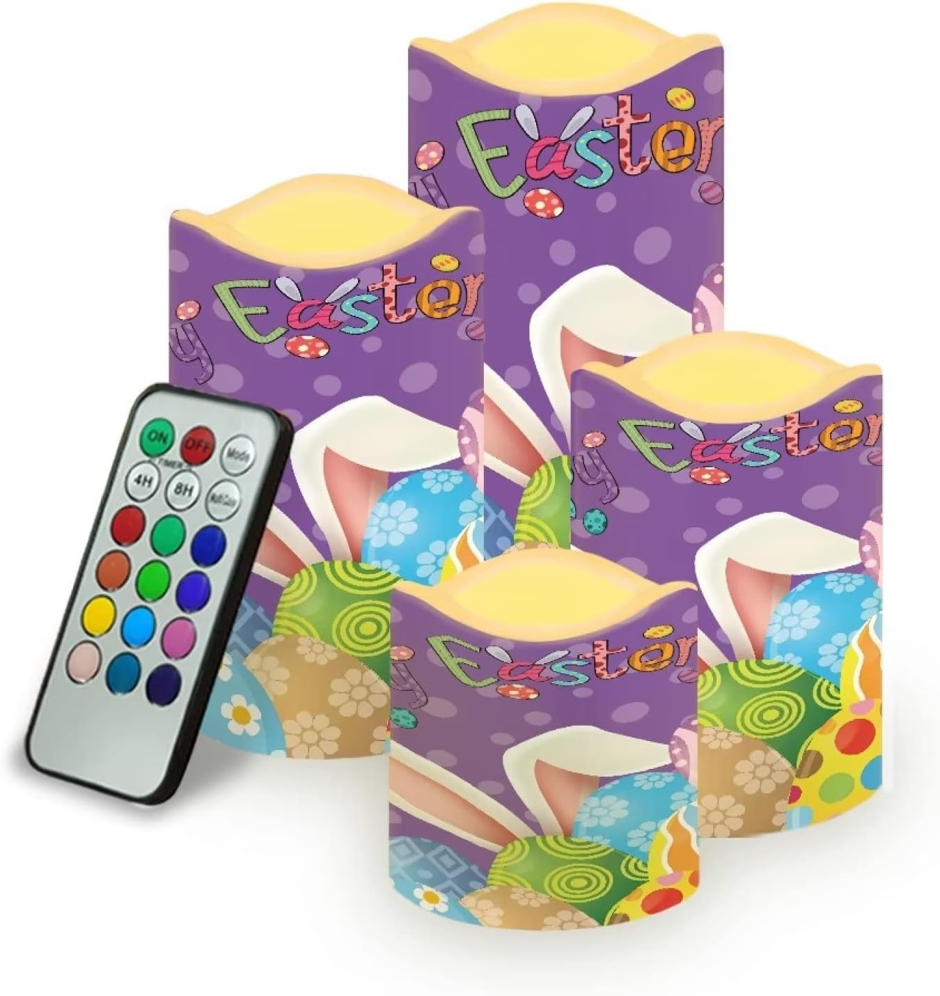 Specification: Material: Realistic wax Light Source: 3D blinking wick Light Color: Warm Yellow Switch: ON/OFF/TIMER(4/8H) Battery: 3 AAA battery(not included) Package Included: 1 x LED candle (size: D 3" x H 3") 1 x LED candle (size: D 3" x H 4") 1 x LED candle (size: D 3" x H 5") 1 x LED candle (size: D 3" x H 6") 1 remote control