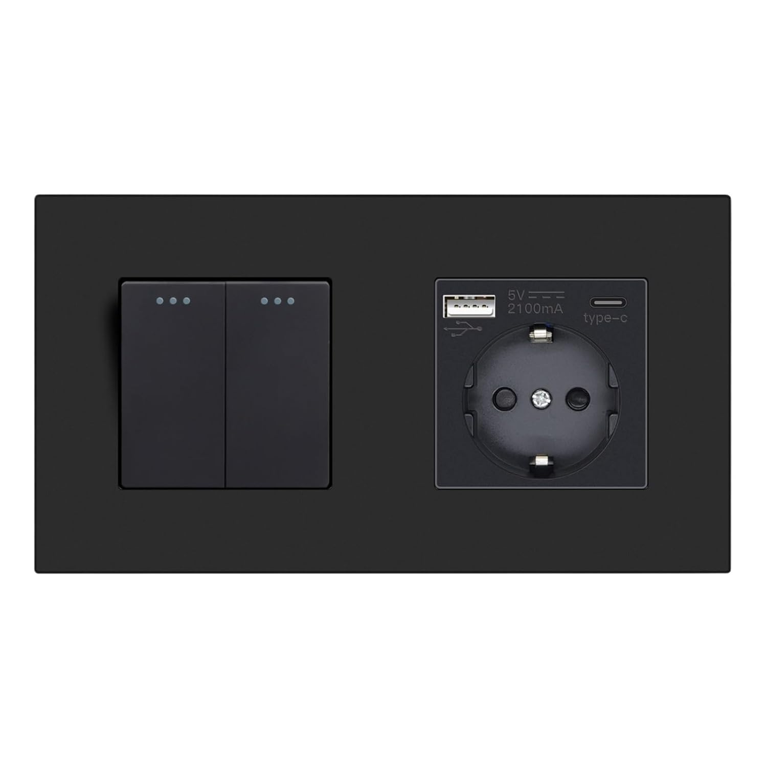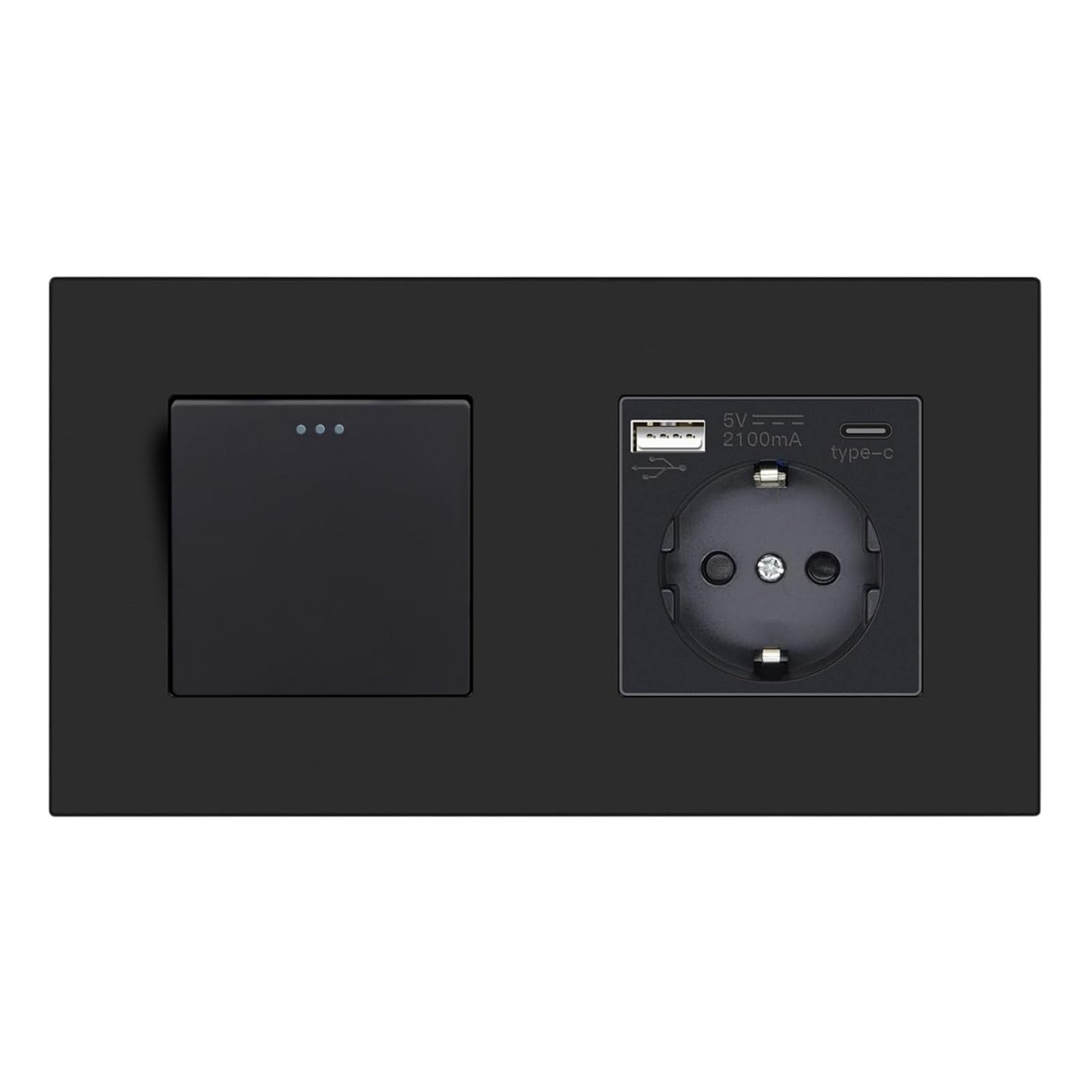 Standard Outlets==========Installation Type : Wall EmbeddedShape : RectangularRated Current : 16AApplication : Residential / General-PurposeOrigin : Mainland ChinaCertification : CE,FCC,RoHSSize : 86*86*35mmColor : BlackMaterial : PlasticMax. Voltage : 250VUSB Current : 2.1A (Double)USB Voltage : 5VType : EU Standard SocketWorking Temperature : -20-70Install the screw hole distance : 60mm