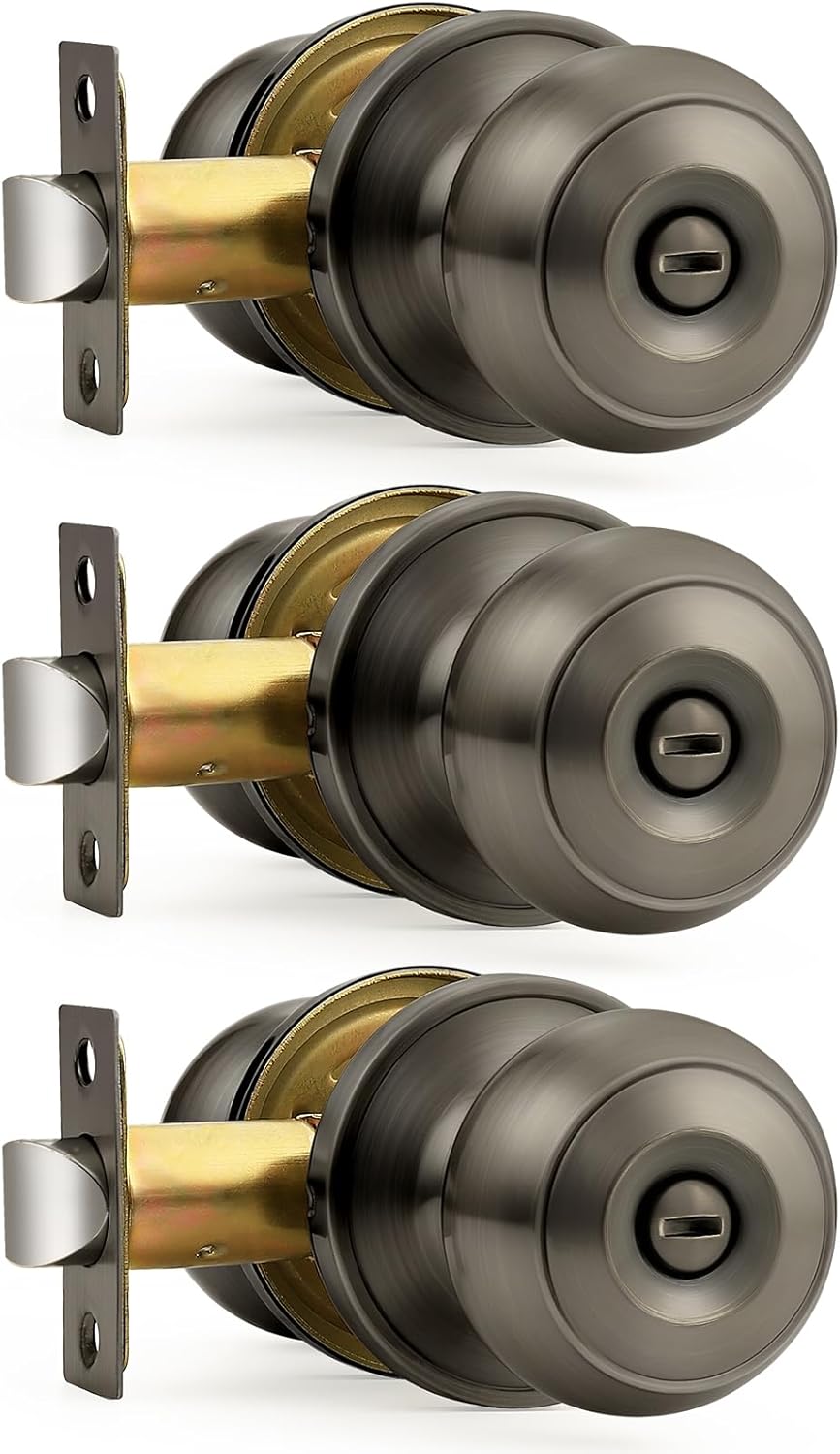 Specification: Backset: Adjustable to 2-3/8" or 2-3/4"(60mm or 70mm). Door Thickness: 1-3/8" or 1-3/4"(35mm-45mm). Handing: Left, Right, Reversible Knob Diameter: 2.24"(57mm) Rosette Diameter: 2.56"(65mm ). Privacy Function: Probrico privacy door knob sets are locked from the interior with a thumb turn, unlock with a small pin/coin hole from the outside. Privacy knobs are ideal for bathrooms, bedrooms, or anywhere a locking door is desired but a keyed cylinder isn't necessary. Easy to Install:Installation is easy, all you need is a screwdriver and a little time. This set is designed to fit standard prep doors and most installations should take less than an hour. High quality:ANSI Grade 3 certified which indicates excellent performance across a range of residential applications. This product is built from high-quality materials to give you exceptional security. About Probrico:Probrico has been known for offering decorative Home hardware: pulls and knobs, drawer slides, door hinge, concealed hinge, door locks and more. In recent years, we’ve expanded our product offering to enhance the look and feel of various rooms in the home. Take a look at our decorative cabinet hardware featuring unique finishes and designs, as well as functional cabinet hardware to fit a variety of cabinets and drawers. Probrico offers solutions for all of your home décor needs.