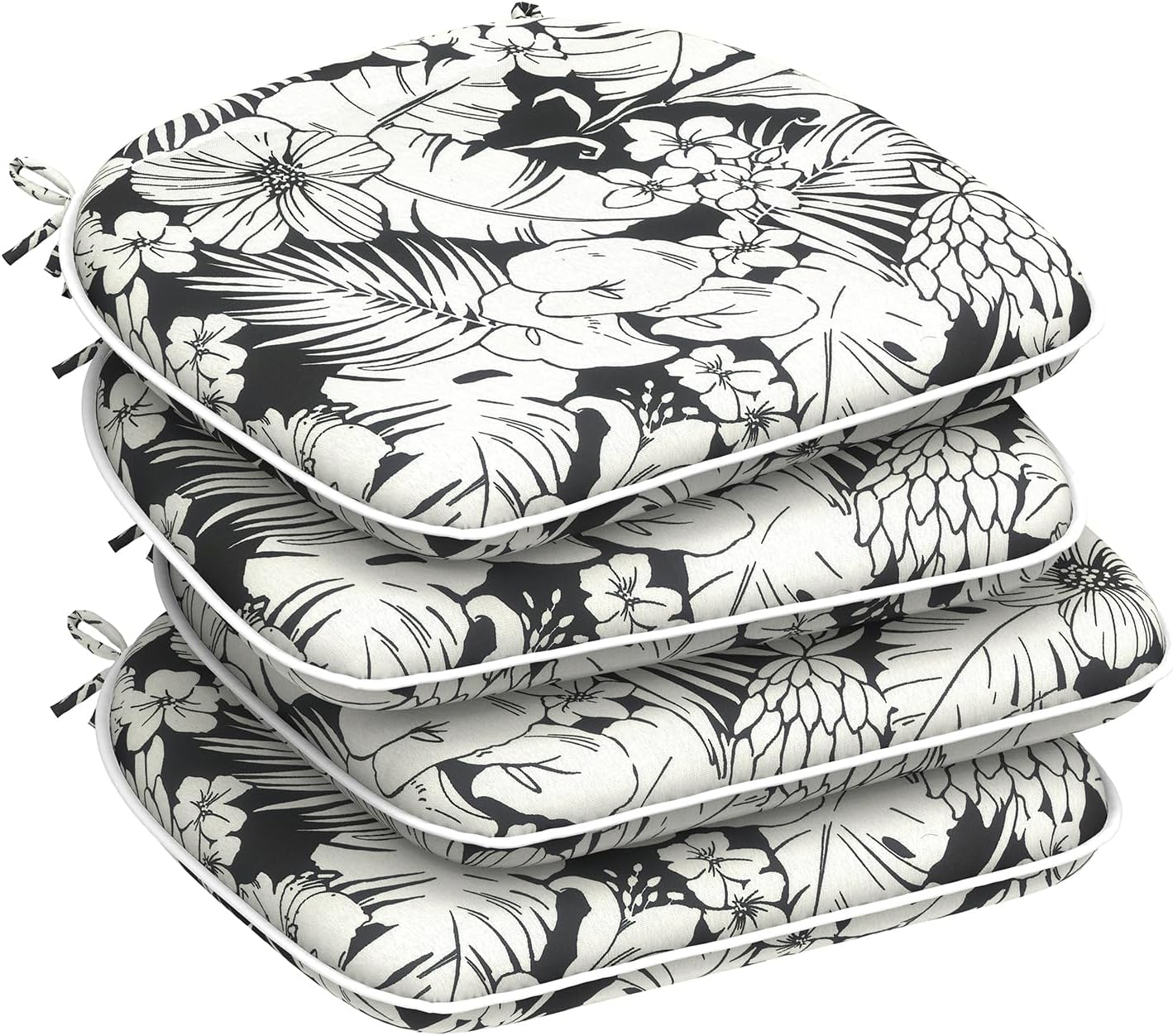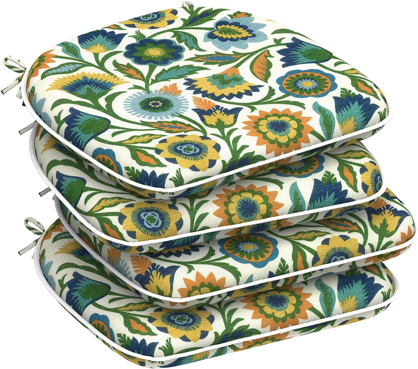DYTXIII Set of 4 Waterproof Outdoor Dining Chair Cushion for Indoor/Outdoor Use Product Features: 1. The fabric of cover is water resistant and sun proof, not easy to fade 2. The cushion is filled with elastic and supportive foam 3. Firmly fabric seams, not easily broken 4. Each pattern is meticulously designed, featuring double-printed seat cushion with vivid floral patterns, as well as simple and generous solid color or stripe designs. Specification Introduction This patio chair pads includes 4pcs of seat cushions (17"D x 16"W x 2"H). Due to vacuum packaging, please allow +/- 1 inches deviations resulting from manual measurement and give it a few days to expand to the final size listed in the description. Besides, we provide outdoor/indoor lumbar pillow, seat cushion, cushion cover, inflatable footstool and outdoor tablecloth a range of outdoor products. Applicable Scenarios Can be matched in dining chair, garden chair, wicker chair, and other outdoor furniture. Just enjoy your garden/patio/balcony time. Washing Tips Lightly spot clean fabric with mild detergent and cool water; then let air dry at low temperature. Quality Assurance Products are subject to strict quality test before shipment If you have any question about the product, please don't hesitate to contact us.