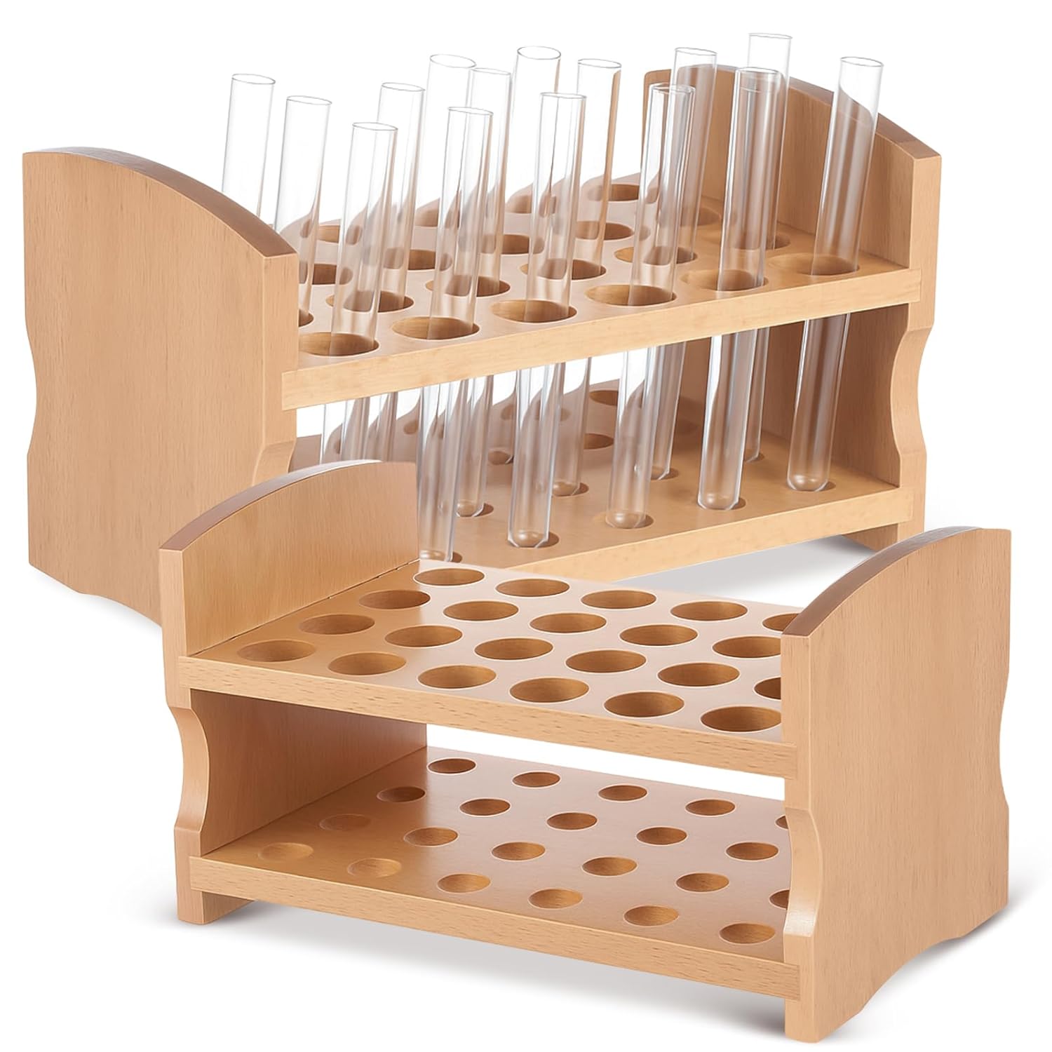 Features: Apart from its practical features, our wooden test tube rack introduces an element of style usually missing in scientific environments. It's a novel way of adding a touch of class to your lab or study space without compromising on functionality. Nothing surpasses consistent product. Our wooden test tube rack maintains its texture, durability, and functionality over an extended period, ensuring you get steady reliable use without the constant need for replacements. Say hello to consistent, long-term convenience! Specifications: Material: wooden Color: wood color Size: 10.2 x 6 x 3 inches/ 26 x 15.2 x 7.6 cm Package includes: 4 x Wooden Test Tube Rack Notes: Manual measurement, please allow slight errors on size. The color may exist a slight difference due to different screen displays.